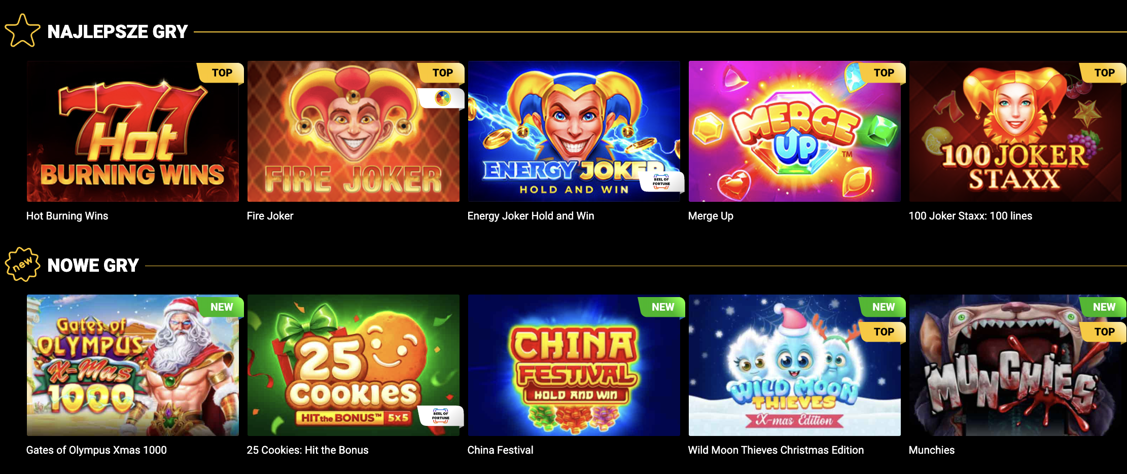 Rodzaje gier: Sloty, Kasyno na żywo, Poker, Blackjack, Bakarat